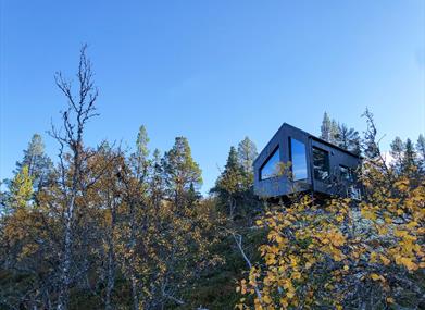 Auf Baugsberget, 800 Meter über dem Meer, erwarten Sie drei einzigartige Fjelltopphytter mit spektakulärem Panoramablick über das Flusstal, das Dorf Alvdal und die umliegenden Berge.